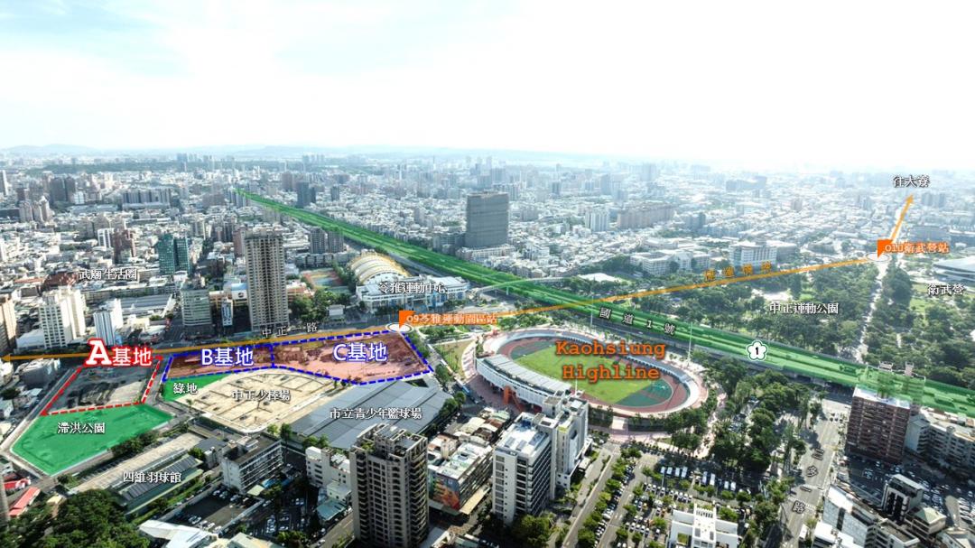 捷運局長吳嘉昌表示,O9站土地開發案周邊有Kaohsiung Highline運動公園、苓雅運動中心等大型運動場域,鄰近O9站2號出口,是結合運動園區與 TOD 發展的重要示範;全區總開發面積約2.03公頃,共有A、B、C等3基地。