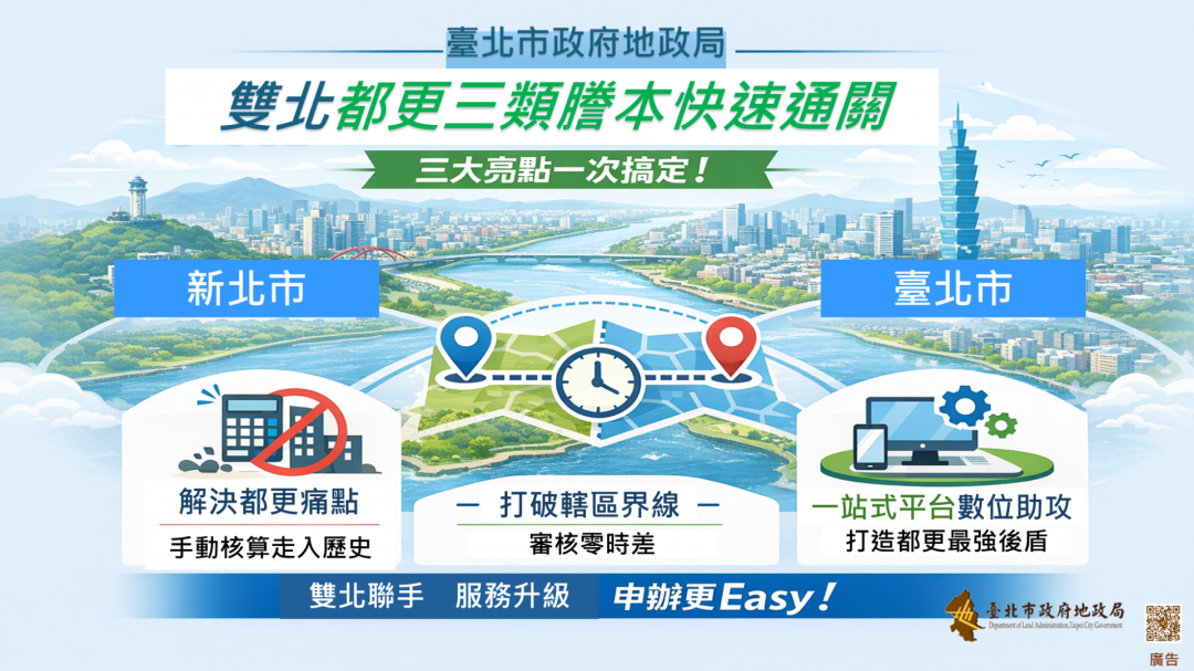 2/2日起,雙北建立跨市都更三類謄本審核合作機制,行政效能大幅提升。(臺北市政府地政局提供)